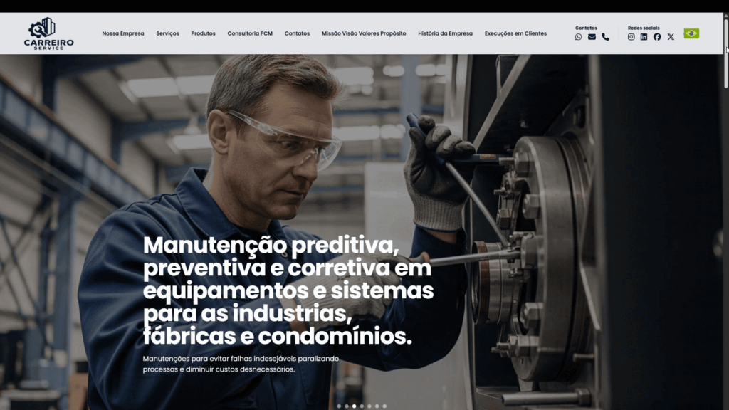Várias páginas (Home, Sobre, Serviços, Contato, etc.).